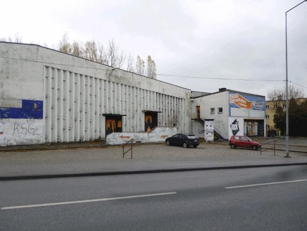 - W sąsiedztwie znajduje się szkoła, zabudowa mieszkaniowa jednorodzinna oraz tereny zadrzewione. Na przedmiotowym gruncie usytuowany jest obiekt budynku kina KOSMOS, wybudowany w technologii tradycyjnej w latach 1959 – 1960, następnie w 1972 roku rozbudowany, a w 2008 roku została wykonana jego modernizacja. Budynek jest dwukondygnacyjny, w całości podpiwniczony, z płaskim dachem pokrytym papą, o pow. użytkowej 1451 m2 i kubaturze 9402 m3. Składa się z przyziemia, w którym jest jedno mieszkanie z 2 pokojami, kuchnią, łazienką, przedpokojem i pomieszczeniami gastronomicznymi oraz parteru w skład, którego wchodzi sala kinowa, pomieszczenia administracyjne, holl, szatnia i sanitariaty. Posiada instalacje: elektryczną, wodociągową, kanalizacyjną i gazową, istnieje również niekompletna instalacja centralnego ogrzewania. Stan techniczny budynku jest średni, w chwili obecnej obiekt nie jest użytkowany.