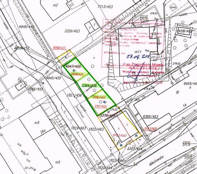 • W skład nieruchomości wchodzą działki oznaczone numerami geodezyjnymi: 3384/456 o pow. 80 m2, 9099/455 o pow. 83 m2 i 9100/463 o pow. 103 m2, na karcie mapy 3 obrębu Mysłowice, posiadające w operacie ewidencji gruntów użytek oznaczony symbolem Bp i zapisane w księdze wieczystej Nr KA1L/00003401/5 Sądu Rejonowego w Mysłowicach.