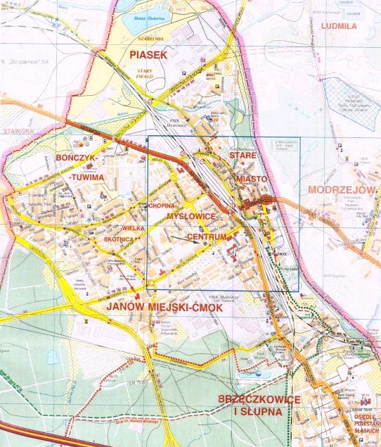 • Przeznaczenie w miejscowym planie zagospodarowania przestrzennego miasta: teren nie posiada pokrycia planem miejscowym, w Studium Uwarunkowań i Kierunków Zagospodarowania Przestrzennego Miasta Mysłowice zatwierdzonym przez Radę Miasta Mysłowice uchwałą Nr XXX/656/08 z dnia 30 października 2008 r. nieruchomość posiada przeznaczenie: