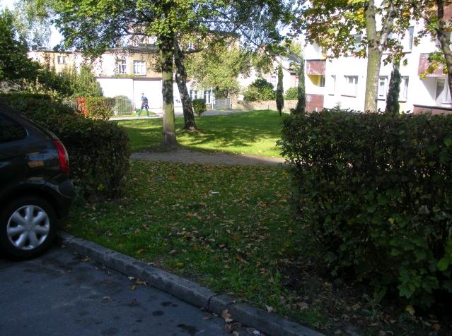 • Nieruchomość usytuowana jest w śródmieściu Mysłowic przy drodze gminnej ulicy Kwiatowej i w rejonie drogi powiatowej ulicy Mikołowskiej. Przedmiotowe działki stanowią trawnik częściowo ogrodzony od ulicy Kwiatowej żywopłotem i metalowymi barierkami od strony pawilonów. Nieruchomość porośnięta jest drzewami liściastymi i w kierunku południowym przecina je nieurządzony ciąg pieszy. Nadto, przez działkę nr 3384/456 przebiega sieć wodociągowa D100. W sąsiedztwie nieruchomości znajdują się wielorodzinne budynki mieszkalne, pawilony handlowe oraz zabudowa mieszkaniowa jednorodzinna.