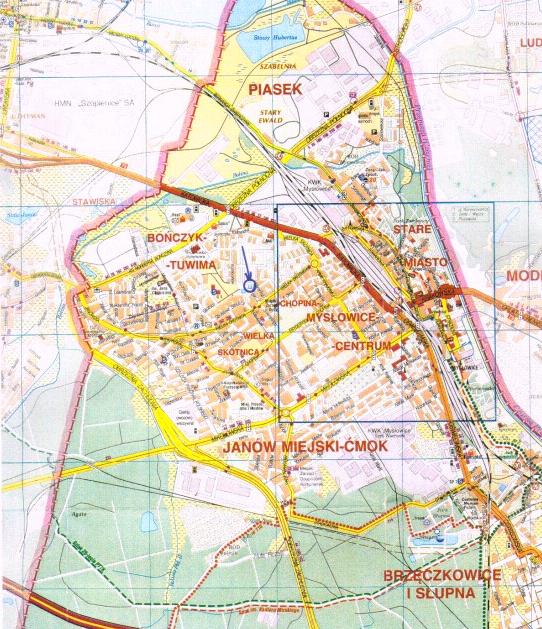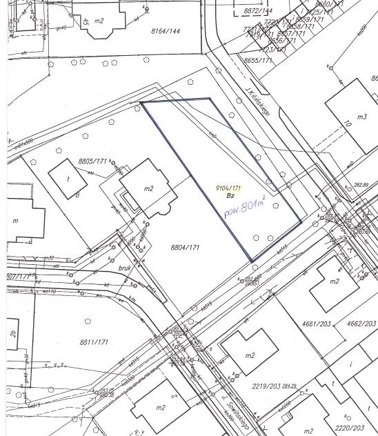 - W skład nieruchomości wchodzi działka nr 9104/171 o pow. 801 m2, położona na karcie mapy 3 obrębu Mysłowice, zapisana w księdze wieczystej nr KA1L/00025404/6 Sądu Rejonowego w Mysłowicach, przeznaczona na cele zgodne z zapisami n/w Studium Uwarunkowań i Kierunków Zagospodarowania Przestrzennego Miasta Mysłowice.
