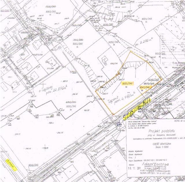 - W skład nieruchomości wchodzi działka nr 9047/348 o pow. 543 m2 zapisana w księdze wieczystej KA1L/00005350/6 oraz działka nr 9051/349 o pow. 4.247 m2 zapisana w księdze wieczystej KA1L/00021357/3, o łącznej pow. 4.790 m2. Działki położone są na karcie mapy 3 obrębu Mysłowice.