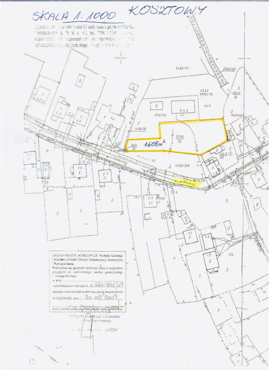 • W skład nieruchomości wchodzi działka nr 2533/70 o pow. 1.608 m2, na karcie mapy 3 obrębu Kosztowy, zapisana w księdze wieczystej KW 26501 Sądu Rejonowego w Mysłowicach, z przeznaczeniem pod zabudowę mieszkaniową jednorodzinną.