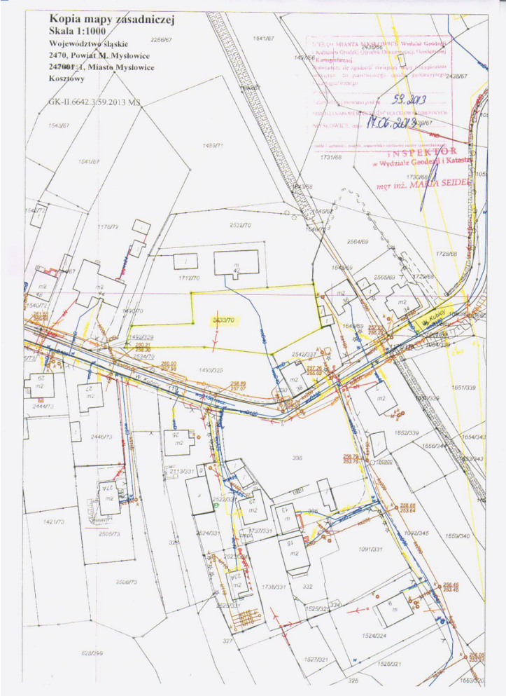 Charakterystyka: Działka niezabudowana położona przy ul. Kubicy w drugiej linii zabudowy, posiada kształt nieregularny, w części porośnięta jest zielenią wysoką. Dojazd do zbywanej działki nr 2533/70 będzie się odbywać od zachodniej części nin. działki, po działkach gminnych nr: 2534/70 1490/70 i 1492/329 (drogą gruntową). Przez działkę nr 2533/70 przebiega napowietrzna sieć energetyczna, podziemna sieć wodociągowa PE 40, na działce tej znajduje się także słup energetyczny. Nieruchomość może być wykorzystana pod zabudowę mieszkaniową jednorodzinną z zastrzeżeniem, że projektowany obiekt budowlany nie może naruszać istniejącego uzbrojenia podziemnego i nadziemnego terenu i przy jego lokalizacji zostaną zachowane odpowiednie odległości od sieci. W przypadku gdyby jednak projektowana zabudowała kolidowała z przebiegającymi sieciami, nabywca zobowiązany będzie na własny koszt dokonać przełożenia sieci, po uzgodnieniu z ich gestorami, zobowiązany również będzie zapewnić właścicielom sieci dostęp do sieci, celem przeprowadzenia konserwacji lub usunięcia awarii. Ponadto nabywca zobowiązany będzie we własnym zakresie i na własny koszt:
