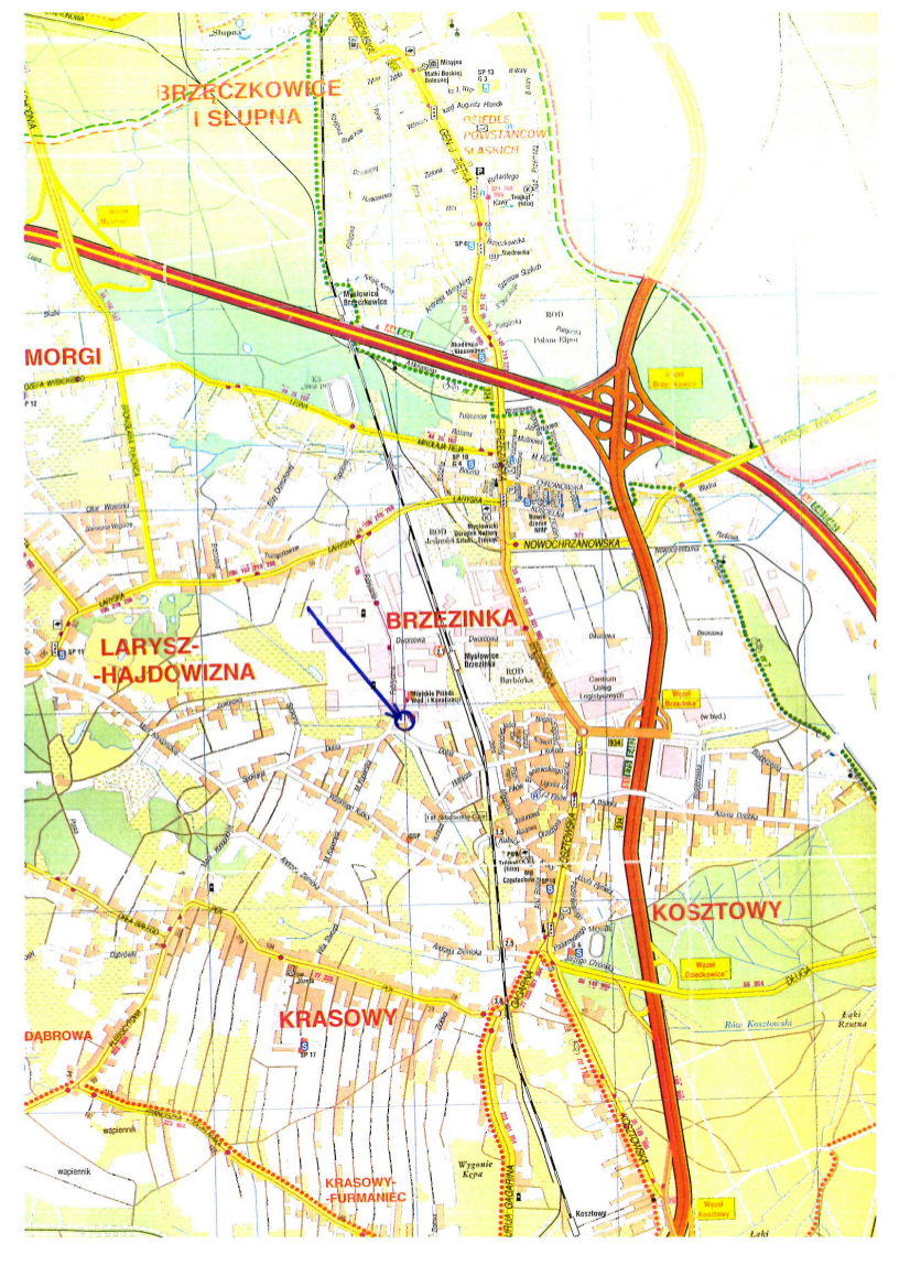 - Nieruchomość niezabudowana, położona w Mysłowicach – Brzezince u zbiegu ulic: Fabrycznej i Dolnej.