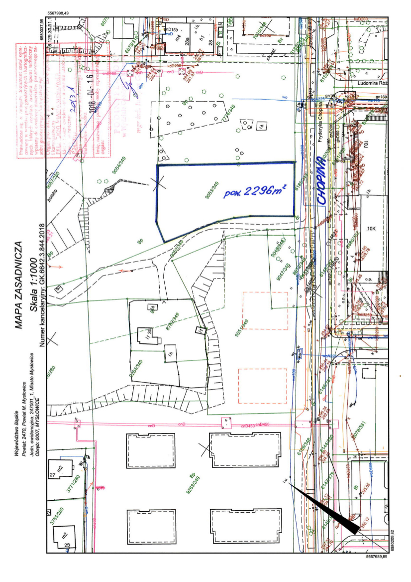 - W skład nieruchomości wchodzi działka nr 9053/349 o pow. 2.296 m2, położona na karcie mapy 3 obrębu Mysłowice, zapisana w księdze wieczystej nr KA1L/00021357/3 Sądu Rejonowego w Mysłowicach, z przeznaczeniem pod zabudowę mieszkaniową wielorodzinną i usługi rangi ogólnomiejskiej (w tym zabudowę usługową związaną z ochroną zdrowia, edukacją).