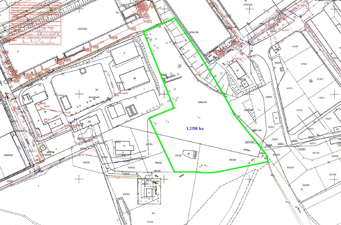 Informacja o terenie niezabudowanym o pow. 1,3398 ha, przeznaczonym pod zabudowę na cele zgodne z zapisem w studium, w tym pod zabudowę na cele usługowe i produkcyjne.