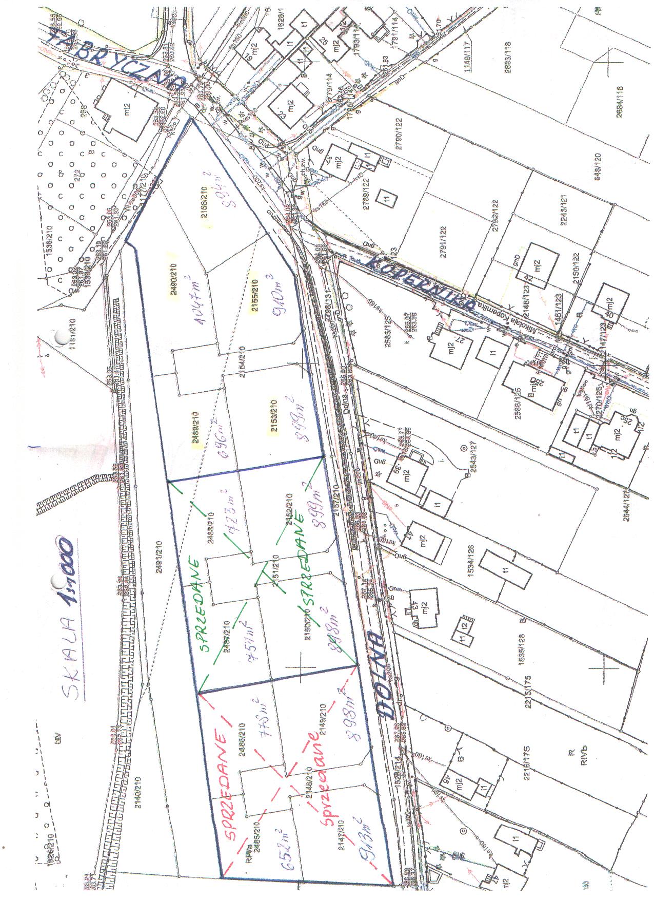 Przetarg ustny nieograniczony na sprzedaż poszczególnych działek wraz z odpowiednim udziałem w gruncie przeznaczonym pod wewnętrzną drogę dojazdową (działka nr 2156/210, będzie posiadała bezpośredni zjazd z ul. Dolnej).