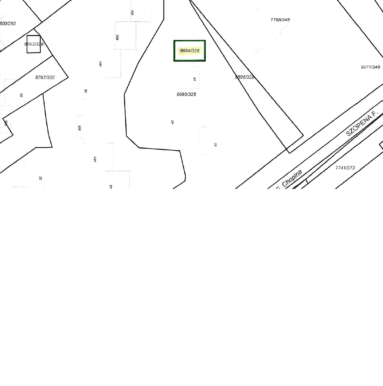 Charakterystyka: Nieruchomość zabudowana, położona w Mysłowicach przy ul. Fryderyka Szopena obok Nr 44. Zbywana działka posiada kształt prostokąta o wymiarach: ok. 11,3 m szerokości i ok. 17 m długości, jest zabudowana budynkiem nieczynnej wymiennikowni ciepła, bezpośrednio przylegającym do północnej ściany budynku Nr 44 przy ul. Szopena (w ścianie tej, w środkowej jej części, znajdują się okna). Obiekt nieczynnej wymiennikowni jest opuszczony, zdewastowany, znajduje się w bardzo złym stanie technicznym, występuje możliwość przecieków przez jego zniszczony dach do piwnic budynku Nr 44 przy ul. Szopena. Budynek wymiennikowni wymaga generalnego remontu, bądź wyburzenia, brak jest dokumentacji technicznej dla nin. obiektu. Na podstawie danych z operatu ewidencji gruntów i budynków powierzchnia zabudowy wymiennikowni wynosi 88 m2. Obiekt wymiennikowni wybudowany został w latach 80-tych ubiegłego wieku. Stopień zużycia technicznego określono na 60%. Budynek wymiennikowni jest murowany z pustaków, częściowo zagłębiony w ziemi. Wejście do budynku schodami w dół zabezpieczone barierką. W pozostałym zakresie teren nie ogrodzony, porośnięty trawą i pojedynczymi drzewami. Budynek wymiennikowni składa się z pięciu pomieszczeń o łącznej pow. użytkowej 72,70 m2 (pomiar z natury), wyposażony jest w instalacje: elektryczną i wodno – kanalizacyjną (nieczynne). Na nieruchomości znajdują się studzienki kanalizacyjne oraz przebiegają sieci uzbrojenia podziemnego terenu: energetyczna, wodociągowa i kanalizacyjna. Nabywca zobowiązany będzie zapewnić właścicielom sieci dostęp do sieci i urządzeń, celem przeprowadzenia konserwacji lub usunięcia awarii. Nieruchomość obejmująca działkę nr 8694/328, posiada zabezpieczony prawnie dostęp do drogi publicznej ul. Szopena na zasadzie służebności gruntowej zapisanej w jej księdze wieczystej tj. każdoczesnym właścicielom nieruchomości zapisanej w KW 30628 przysługuje prawo przejazdu i przechodu do i z w/w nieruchomości władnącej, a to przez nieruchomość zapisaną w KW 30627 po istniejącej drodze dojazdowej i chodniku tj. po działce nr 8695/328 Wspólnoty Mieszkaniowej Nieruchomości przy ul. Szopena nr 40,42,44 w Mysłowicach. Lokalizację zjazdu z drogi publicznej ul. Szopena, nabywca uzgodni z zarządcą drogi w odrębnym postępowaniu. Nabywca zobowiązany będzie we własnym zakresie i na własny koszt w razie potrzeby: Uporządkować nieruchomość; Dokonać wycinki zieleni, po wcześniejszym uzyskaniu decyzji zezwalającej na usunięcie drzew kolidujących z planowaną inwestycją (ewentualne opłaty z tym związane ponosi nabywca); W razie wystąpienia konieczności odwodnienia nieruchomości wykonać je na własny koszt; Uzyskać uzgodnienia branżowe przebiegu sieci i urządzeń uzbrojenia terenu; Zrealizować niezbędne dla zamierzonej inwestycji uzbrojenie techniczne i uzyskać we własnym zakresie zapewnienia dostawy mediów oraz odbioru ścieków i wód opadowych. Nabywca zobowiązany również będzie partycypować: w kosztach utrzymania i remontów nawierzchni chodnika i wewnętrznej drogi dojazdowej, znajdującej się na terenie Wspólnoty Mieszkaniowej Nieruchomości przy ul. Szopena nr 40,42,44 w Mysłowicach, a stanowiącej dojazd do w/w działki oraz w kosztach wynikających z konserwacji i naprawy szlabanu sterowanego elektronicznie, znajdującego się na wprost wjazdu na działkę nr 8695/328 wyżej wym. Wspólnoty, a umożliwiający wjazd na teren nieruchomości. Koszty zakupu karty lub pilota do otwierania szlabanu ponosi nabywca. Brak możliwości korzystania z miejsc postojowych znajdujących się na terenie należącym do w/w Wspólnoty.