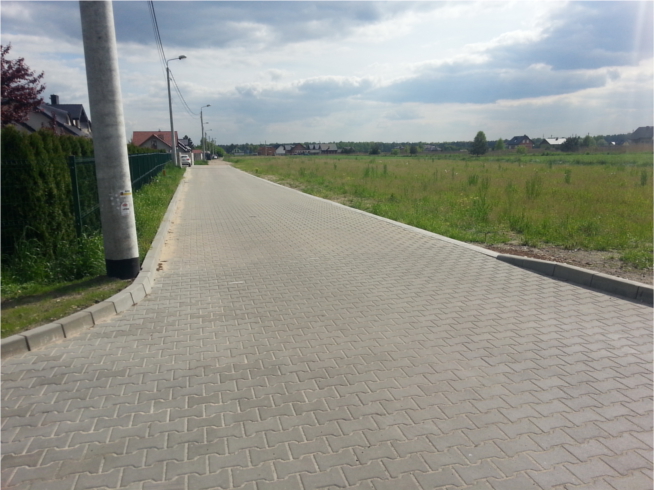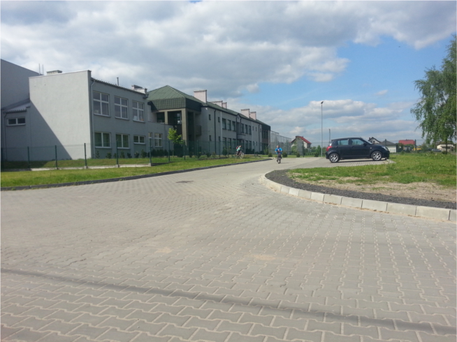 Na odcinku od strony zachodniej szkoły oraz od strony południowej do pobliskiego parkingu boczna ul. PCK jest wykonana z kostki brukowej i nowa nawierzchnia jest jej kontynuacją.
