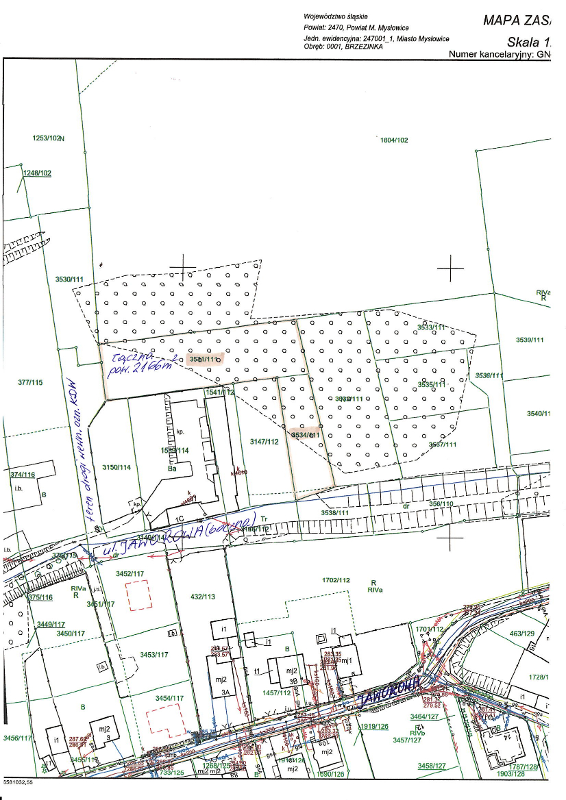 Prezydent Miasta Mysłowice ogłasza ustny przetarg nieograniczony na sprzedaż nieruchomości niezabudowanej, stanowiącej własność Gminy Mysłowice, położonej w Mysłowicach przy ul. Jaworowej, obejmującej działki: nr 3531/111 o pow. 1560 m2 i nr 3534/111 o pow. 606 m2, o łącznej pow. 2166 m2, na arkuszu mapy 3 obrębu 0001 Brzezinka, zapisane w księdze wieczystej nr KA1L/00021504/9 Sądu Rejonowego w Mysłowicach, z przeznaczeniem na cele zgodne z zapisami obowiązującego miejscowego planu zagospodarowania przestrzennego. Zgodnie z uchwalonym przez Radę Miasta Mysłowice uchwałą nr L/778/18 z dnia 26 kwietnia 2018 roku, miejscowym planem zagospodarowania przestrzennego „Brzezinka Zachodnia” w Mysłowicach, nin. nieruchomość położona jest w strefie oznaczonej symbolem: