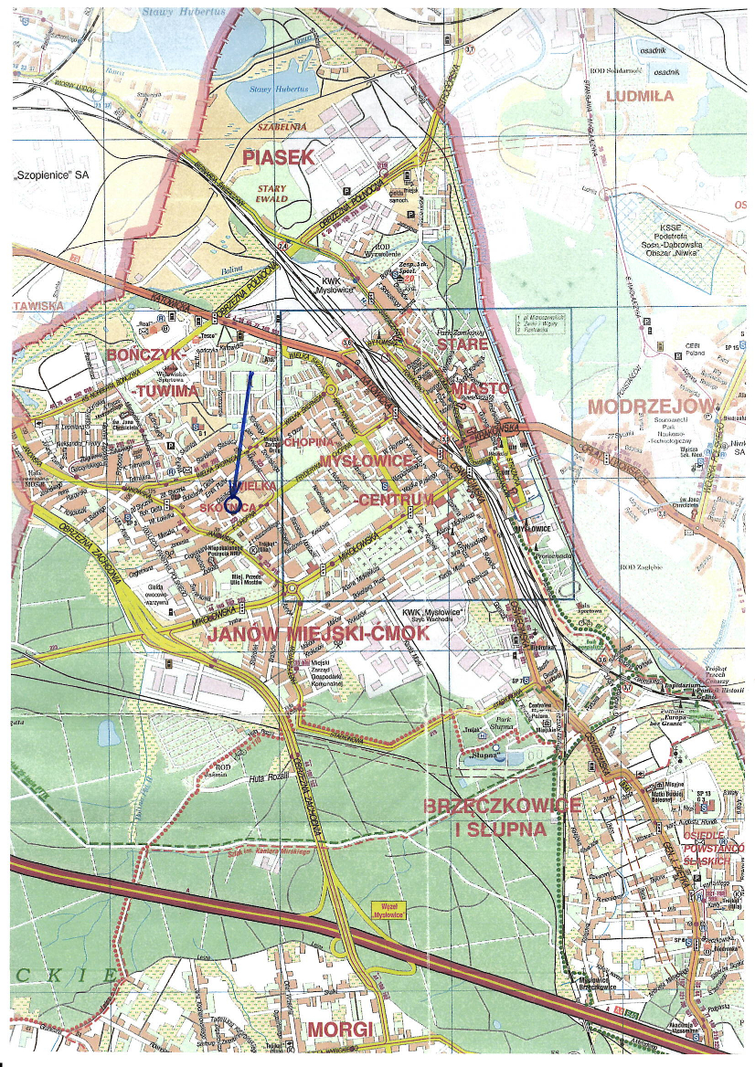 na sprzedaż nieruchomości zabudowanej, stanowiącej własność Skarbu Państwa, położonej w Mysłowicach przy ul. Fryderyka Szopena, obejmującej działkę nr 8694/328 o pow. 192 m2 (użytek Ba) na karcie mapy 3 obrębu 0007 Mysłowice, zapisanej w księdze wieczystej nr KA1L/00030628/0 Sądu Rejonowego w Mysłowicach, z przeznaczeniem na cele zgodne z zapisami niżej wym. Studium Uwarunkowań i Kierunków Zagospodarowania Przestrzennego Miasta Mysłowice. Przeprowadzone ustne przetargi nieograniczone na sprzedaż nin. nieruchomości tj. pierwszy przetarg w dniu 27.10.2020 r., a drugi przetarg w dniu 09.02 2021 r. - zakończyły się wynikiem negatywnym. Zbywana nieruchomość jest zabudowana budynkiem nieczynnej wymiennikowni ciepła, bezpośrednio przylegającym do północnej ściany budynku Nr 44 przy ul. Szopena (w ścianie tej, w środkowej jej części, znajdują się okna). Obiekt nieczynnej wymiennikowni jest opuszczony, zdewastowany, znajduje się w bardzo złym stanie technicznym, występuje możliwość przecieków przez jego zniszczony dach do piwnic budynku Nr 44 przy ul. Szopena. Budynek wymiennikowni wymaga generalnego remontu, bądź wyburzenia, brak jest dokumentacji technicznej dla nin. obiektu. Na podstawie danych z operatu ewidencji gruntów i budynków powierzchnia zabudowy wymiennikowni wynosi 88 m2. Obiekt wymiennikowni wybudowany został w latach 80-tych ubiegłego wieku. Stopień zużycia technicznego określono na 60%. Budynek wymiennikowni jest murowany z pustaków, częściowo zagłębiony w ziemi. Wejście do budynku schodami w dół zabezpieczone barierką. W pozostałym zakresie teren nie ogrodzony, porośnięty trawą i pojedynczymi drzewami. Budynek wymiennikowni składa się z pięciu pomieszczeń o łącznej pow. użytkowej 72,70 m2 (pomiar z natury), wyposażony jest w instalacje: elektryczną i wodno – kanalizacyjną (nieczynne). Nieruchomość nie posiada opracowanego miejscowego planu zagospodarowania przestrzennego, a w obowiązującym Studium Uwarunkowań i Kierunków Zagospodarowania Przestrzennego Miasta Mysłowice, uchwalonym przez Radę Miasta Mysłowice uchwałą Nr XXX/656/08 z dnia 30 października 2008 r., położona jest w obszarze oznaczonym symbolem E.10.MWU – tereny zabudowy mieszanej: mieszkaniowej wielorodzinnej i usług rangi ogólnomiejskiej. Z uwagi na fakt występowania w południowej granicy działki nr 8694/328 elewacji budynku z oknami na nieruchomości sąsiedniej, to chcąc zagospodarować nieruchomość obejmującą działkę nr 8694/328, bez zabierania praw nabytych (otwory okienne w budynku nr 44) na sąsiedniej nieruchomości, sposób zagospodarowania na tej nieruchomości będzie ograniczony do rozbudowy i zmiany sposobu użytkowania istniejącego na niej obiektu. Bezwzględnie zakazuje się nadbudowy obiektu wymiennikowni i podnoszenia kondygnacji. Nieruchomość może być wykorzystana na parking/garaż wielostanowiskowy, obiekt gospodarczy czy usługowy. Zagospodarowanie nieruchomości nastąpi na podstawie szczegółowych warunków, które zostaną określone w decyzji o warunkach zabudowy, wydanej na wniosek nabywcy. Działy III i IV księgi wieczystej prowadzonej dla wyżej wym. działki nie zawierają wpisów.
