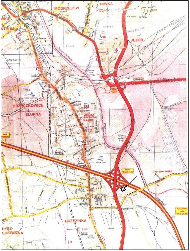 · Nieruchomości usytuowane są na południowy – wschód od centrum miasta Mysłowice, w dzielnicy Brzezinka. Posiadają nieregularne kształty zbliżone do prostokąta, ze spadkiem w kierunku południowym. Porośnięte są roślinnością trawiastą i pojedynczymi drzewami. W pobliżu północnej granicy działki o numerze ewidencyjnym 4040/415 usytuowany jest ekran wygłuszający. Działki posiadają możliwość dostępu do sieci uzbrojenia: energii elektrycznej, wodociągowej, kanalizacyjnej i gazowej. Infrastruktura techniczna znajduje się w nieznacznym oddaleniu od nieruchomości. W bezpośrednim sąsiedztwie działek występuje zabudowa mieszkaniowa jednorodzinna, a dalej warsztaty i zakłady usługowe. Przedmiotowy teren położony jest w pobliżu węzła drogowego A4 – S1 „Brzęczkowice”. Obsługa komunikacyjna nieruchomości odbywać się będzie z drogi publicznej ulicy Chrzanowskiej, poprzez istniejący zjazd i działkę o numerze ewidencyjnym 3021/396 oraz wewnętrzną drogę dojazdową, będącą w częściach przedmiotem sprzedaży.