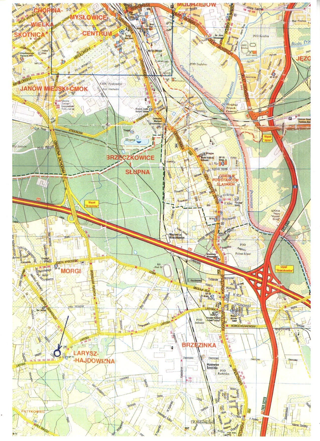 1. Działki niezabudowane, położone w Mysłowicach – Laryszu u zbiegu ulic: Cichej i Wiejskiej, przeznaczone do sprzedaży łącznie jako jedna zorganizowana całość gospodarcza o ogólnej pow. 11469 m2, pod zabudowę mieszkaniową wielorodzinną, zgodną z zapisami wyżej wym. miejscowego planu zagospodarowania przestrzennego. Zbywany teren posiada kształt nieregularny, porośnięty jest roślinnością wymagającą wycinki (drzewa i krzewy – samosiejki). Przy południowej granicy działki nr 2486/141 znajdują się pozostałości (resztki) po ogródkach, wymagające uporządkowania. Przedmiotowe grunty objęte są wpływami aktualnej eksploatacji górniczej oraz płytkiej eksploatacji dokonanej w przeszłości. W granicach w/w działek oraz w ich sąsiedztwie znajdowały się liczne szyby i szybiki związane z płytką eksploatacją pokładu (na zbywanych gruntach zlokalizowane są 2 zlikwidowane szybiki, nin. teren położony jest częściowo w strefie uskokowej). Powyższe działki znajdują się na obszarze terenu górniczego,w związku z czym wznoszenie trwałych budowli i urządzeń, wymagać będzie uzgodnienia z właściwym organem państwowego nadzoru górniczego. Obsługa komunikacyjna zbywanego terenu może się odbywać z drogi publicznej – ul. Wiejskiej i ul. Cichej. Lokalizację zjazdu nabywca uzgodni z zarządcą drogi w odrębnym postępowaniu.