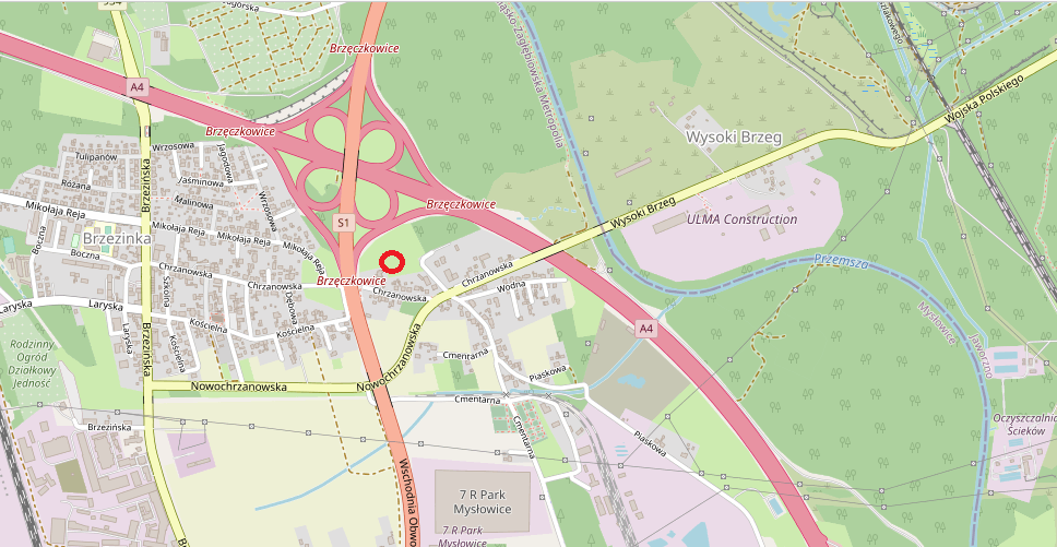 1. Działki niezabudowane, położone w Mysłowicach przy ulicy Chrzanowskiej przeznaczone do sprzedaży, na cele zgodne z zapisami wyżej wym. miejscowego planu zagospodarowania przestrzennego tj. pod zabudowę usługowo-produkcyjną wraz z udziałem dla każdej z nich ¼ części w działce nr 4044/415 o pow. 1267 m2 stanowiącej wewnętrzną drogę dojazdową. Przedmiotowe nieruchomości położone są na południowy wschód od centrum miasta Mysłowice, w dzielnicy Brzezinka. Działki nr 4039/415, 4040/415, 4041/415, 4042/415 posiadają nieregularny kształt i są porośnięte zielenią nieurządzoną oraz pojedynczymi drzewami. W sąsiedztwie nieruchomości występuje zabudowa mieszkaniowa jednorodzinna, warsztaty i zakłady usługowe. Przedmiotowe nieruchomości pozostają też w oddziaływaniu węzła komunikacyjnego „Brzęczkowice” (autostrada A4 - droga krajowa S1). Obsługa komunikacyjna nieruchomości odbywać się będzie z drogi publicznej ulicy Chrzanowskiej, poprzez istniejący zjazd i działkę gminną oznaczoną numerem ewidencyjnym 3021/396 oraz wewnętrzną drogę dojazdową, która w części jest przedmiotem sprzedaży.
