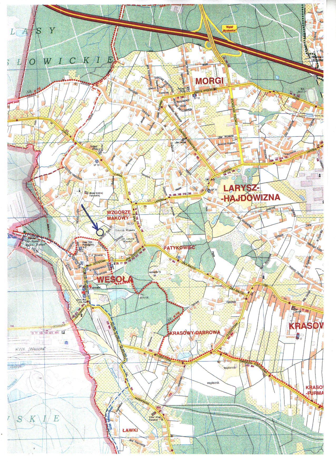 1. Nieruchomość niezabudowana, położona w Mysłowicach – Wesołej u zbiegu ulic: Harcerzy Śląskich i Kryształowej, przeznaczona do sprzedaży na cele zgodne z zapisami wyżej wym. Studium uwarunkowań i kierunków zagospodarowania przestrzennego miasta Mysłowice. Najbliższe otoczenie nieruchomości stanowi zabudowa wielorodzinna, jednorodzinna, garaże i ogródki działkowe oraz tereny niezabudowane. Zbywana działka objęta jest wpływami aktualnej eksploatacji górniczej oraz płytkiej eksploatacji dokonanej w przeszłości, w części porośnięta jest drzewami i krzewami, znajduje się na niej wg mapy, otwór wiertniczy nr 160. Przyszły nabywca zobowiązany będzie we własnym zakresie sprawdzić pod względem geofizycznym wykazany na mapach otwór wiertniczy nr 160, ze względu na brak danych nt. nin. otworu wiertniczego (zarówno w Wydziale Ochrony Środowiska Urzędu Miasta w Mysłowicach, jak i w Dziale Mierniczo - Geologicznym KWK Mysłowice - Wesoła). Ze względu na istnienie na mapie ww. otworu wiertniczego, jakakolwiek zabudowa tego terenu, musi uwzględniać zachowanie odpowiedniej odległości od nin. otworu. Przez zbywaną nieruchomość przebiegają sieci uzbrojenia podziemnego terenu: w południowej jej części, od strony ul. Kryształowej, przebiega czynna stara sieć kanalizacji sanitarnej ks300, a przy zachodniej granicy ww. działki znajdują się studzienki kanalizacyjne. Nin. grunt może być wykorzystany pod zabudowę z zastrzeżeniem, że projektowane obiekty budowlane nie mogą naruszać istniejącego uzbrojenia podziemnego terenu i przy ich lokalizacji zostaną zachowane odpowiednie odległości od sieci. W przypadku, gdyby jednak projektowana zabudowa kolidowała z przebiegającymi sieciami, nabywca dokona ich przełożenia na własny koszt, po uzgodnieniu z gestorem sieci. Nabywca zobowiązany będzie zapewnić właścicielowi sieci dostęp do sieci, celem przeprowadzenia konserwacji lub usunięcia awarii. Obsługa komunikacyjna zbywanej nieruchomości może się odbywać z drogi publicznej gminnej – ulicy Harcerzy Śląskich i ulicy Kryształowej. Lokalizację zjazdu nabywca uzgodni z zarządcą drogi w odrębnym postępowaniu.