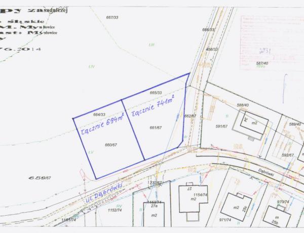 1)  nr 661/67 o pow. 574 m2  i nr665/33 o pow. 167 m2, o łącznej pow. 741 m2;